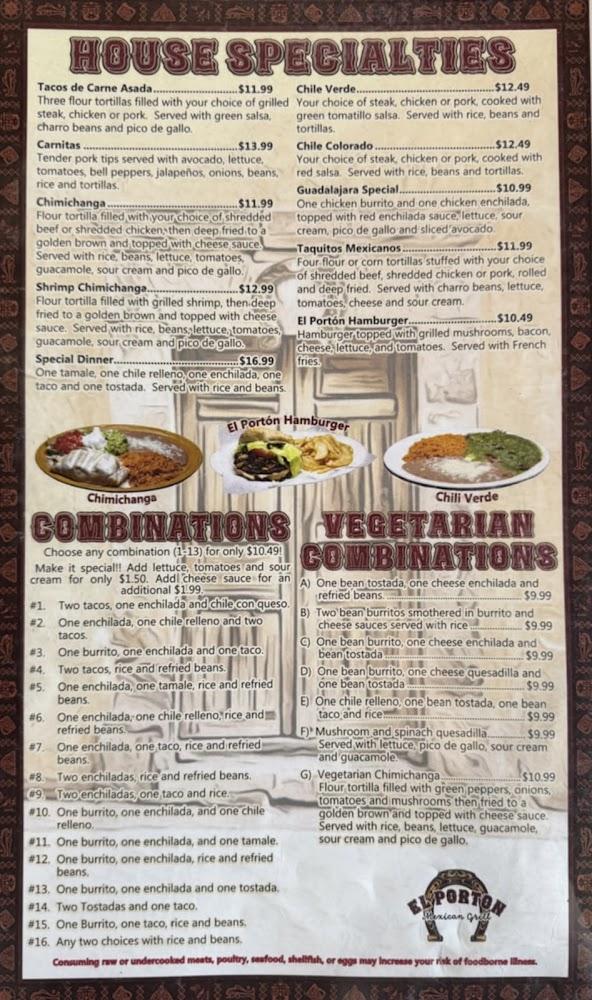 El Porton’s menu is extensive, featuring various options, from classic enchiladas to flavorful fajitas. Popular dishes like burritos and seafood options please every palate. Each plate embodies traditional Mexican flavors, crafted with fresh, high-quality ingredients. Vegetarian meals and kid-friendly options ensure inclusivity for all diners. During lunch hours, special combos make meals even more appealing. Cocktails and authentic desserts round out a lovely dining experience. With over 150 dishes, every visit promises a new culinary adventure.